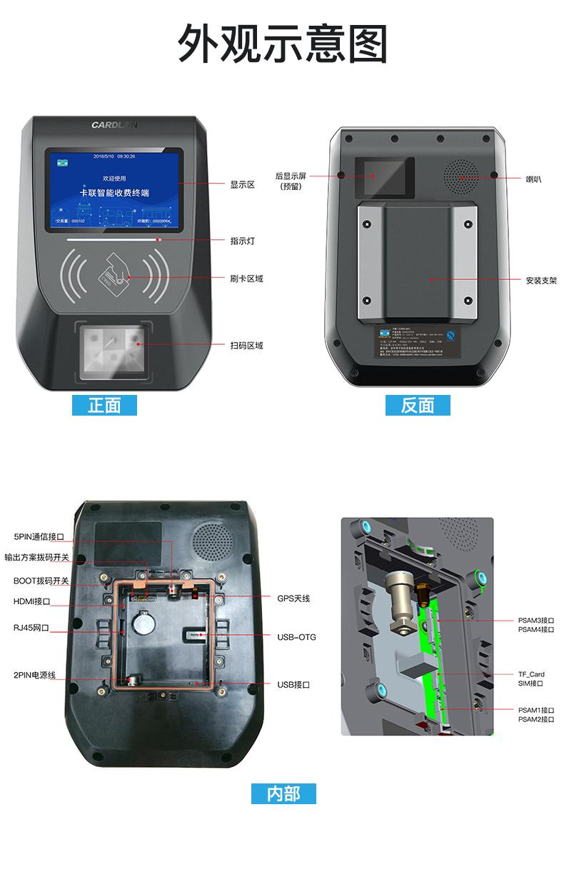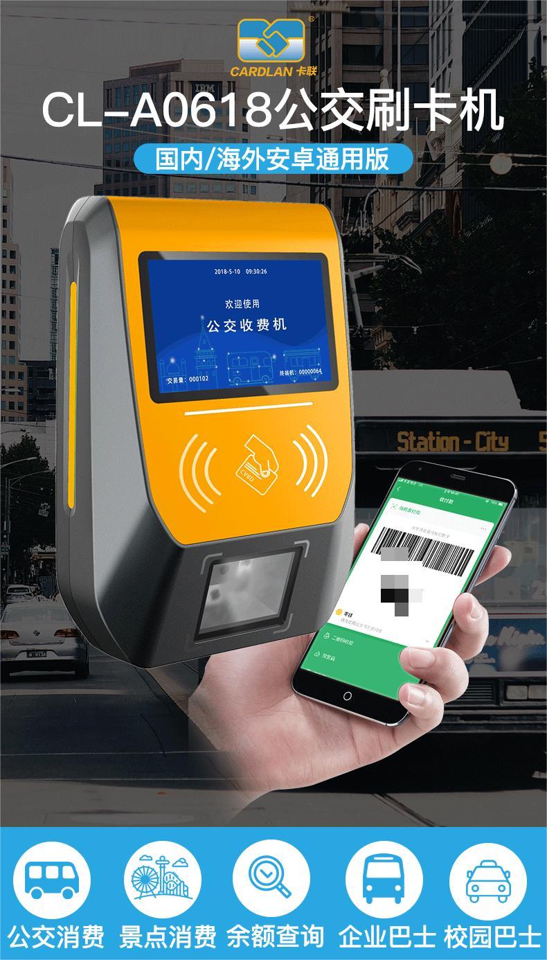 CARDLAN卡联扫码公交车载刷卡终端机CL-A0618智能收费终端主要功能有无线通讯、GPS定位、IC卡读卡、电子支付、余额查询等。