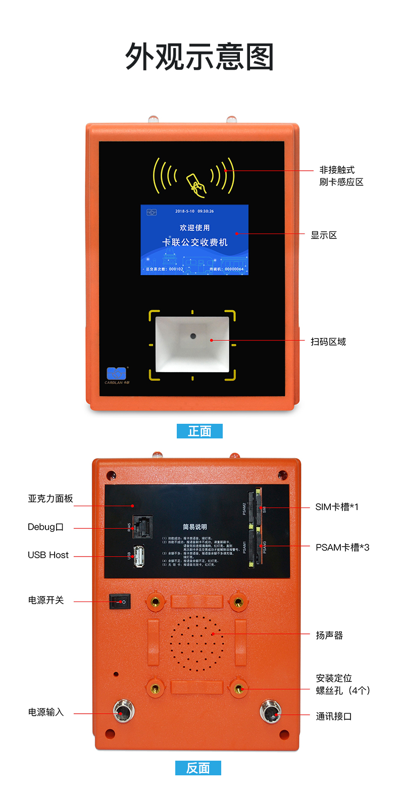 刷卡扫码、无线通讯、GPS定位、IC卡读卡、电子支付、余额查询、广告投放、分段收费、可定制二次开发等