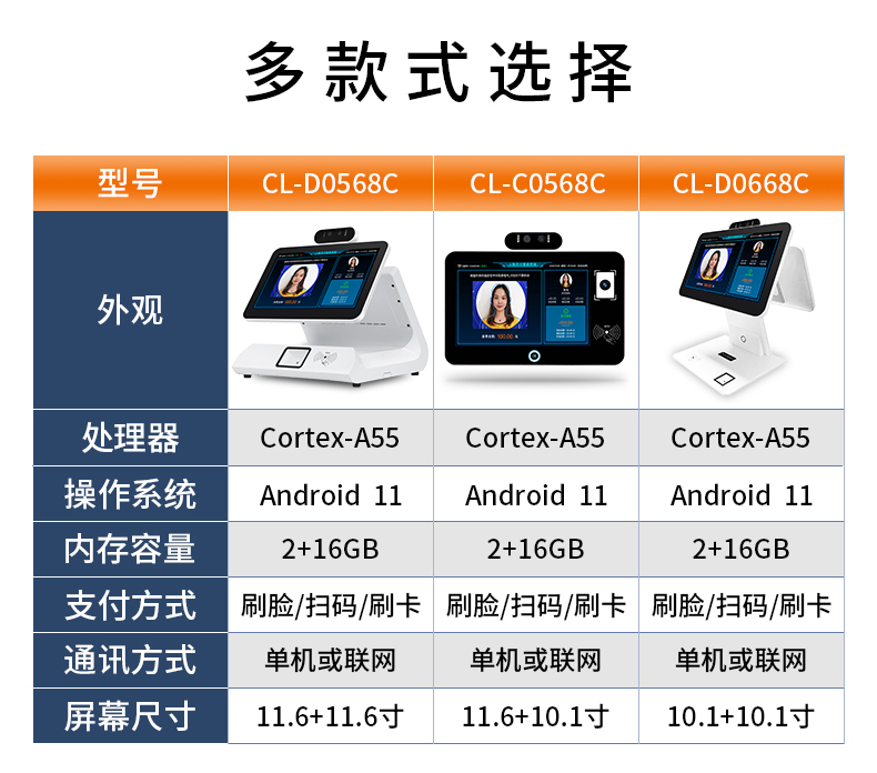 卡联立式人脸识别饭堂消费机CL-C0668 C采用先进的人脸识别技术进行身份验证,具有识别速度快、识别准确度高、免接触、防盗刷、无损耗、技术先进、系统扩展性好等优点,特别适合学校、机关、企事业内部食堂使用。