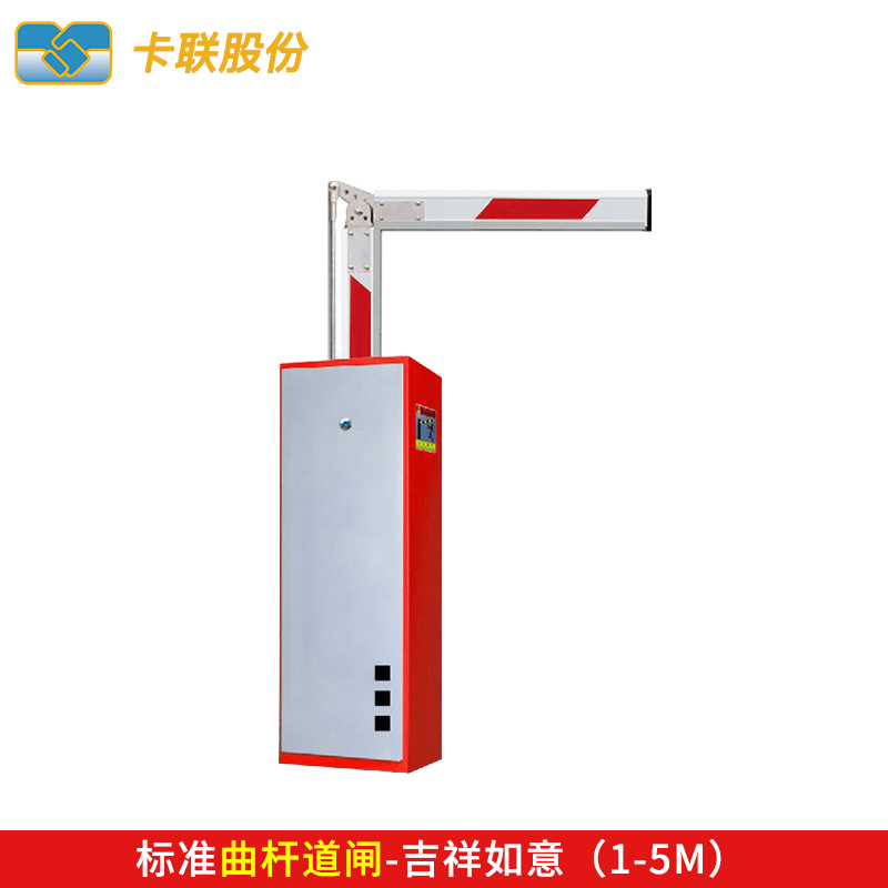 大门停车场曲杆道闸系统是停车场系统出入口控制不可或缺的设备,卡联写字楼门口曲杆道闸采用人性化的离合装置,在停电或故障时只需要打开离合装置即可转换成手动控制道闸升降,来电时自动转换成电动;