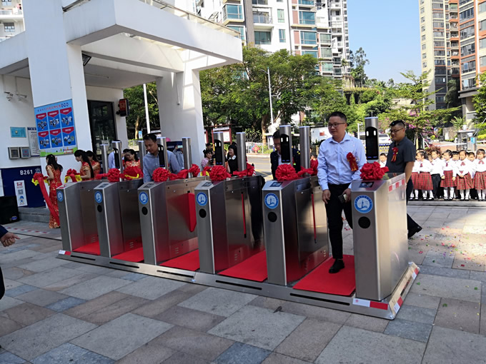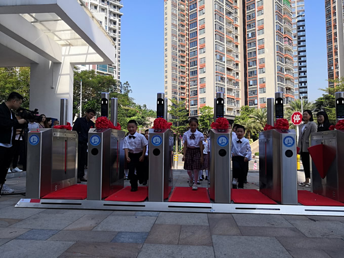 云海学校智慧平安校园项目即(安全智慧校园 - 微信推送系统)是基于响应教育部对校园安全问题的倡导、也是云海学校校领导对同学们的关爱和对安全的高度重视, “安全智慧校园”依靠最新的AI技术,将人脸识别与互联网技术相结合,高效的将学校教职工与学生以及家长三个重要主体紧密联系在一起,及时掌握学生们进出学校的安全问题。深圳卡联提供人脸识别人行通道闸机设备与技术支持,2019年11月11日,正值淘宝“双十一”狂欢节,云海学校携手卡联股份举行“智慧校园”项目启用仪式。
