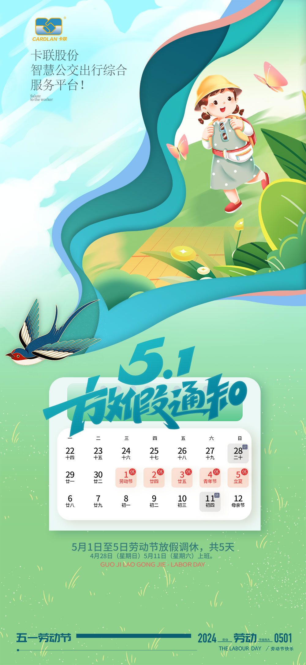 关于卡联股份2024年五一劳动节放假通知